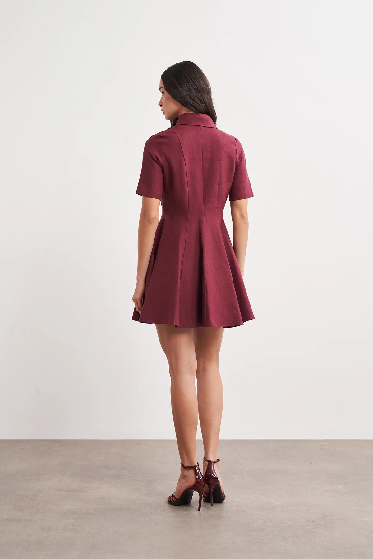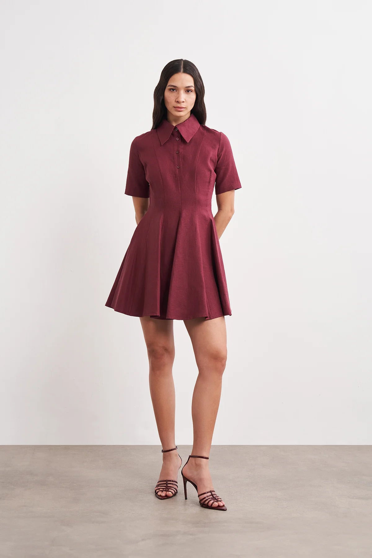Gömlek Yaka Yarım Kollu Volanlı Mini Elbise
