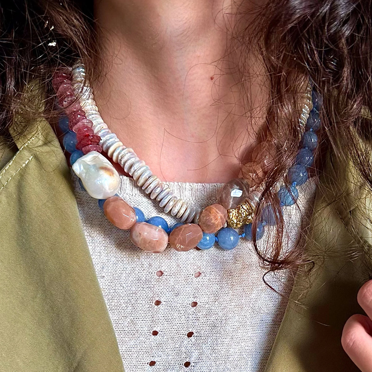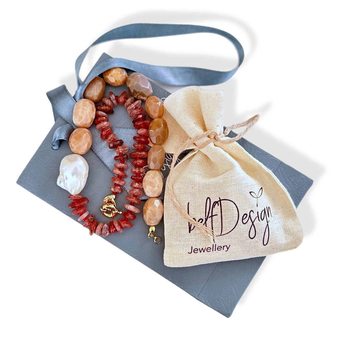 • Doğal akik taş, çilek kuvars  ve doğal barok inci ile hazırlanmıstır.