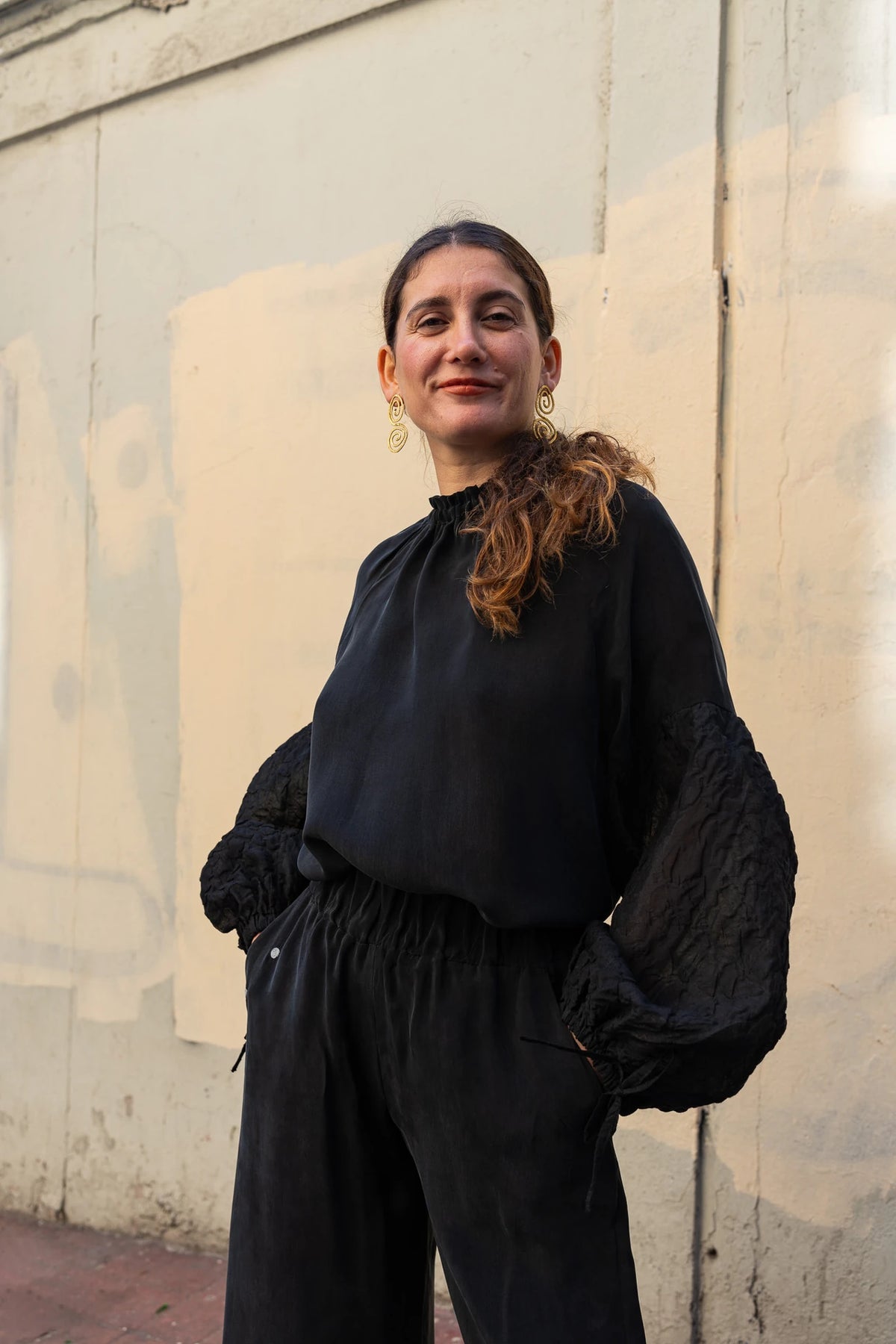 Taşlanmış görünümlü, dökümlü, İpeker imzalı % 100 vegan kupro kumaş. Pamuk atıklarının ileridönüşümü yoluyla üretilmiştir. Kuru temizleme yapabilir, çamaşır makinesinin hassas-narin programında yıkayabilir, asarak kurutabilir ve düşük ısıda ütüleyebilirsiniz.
