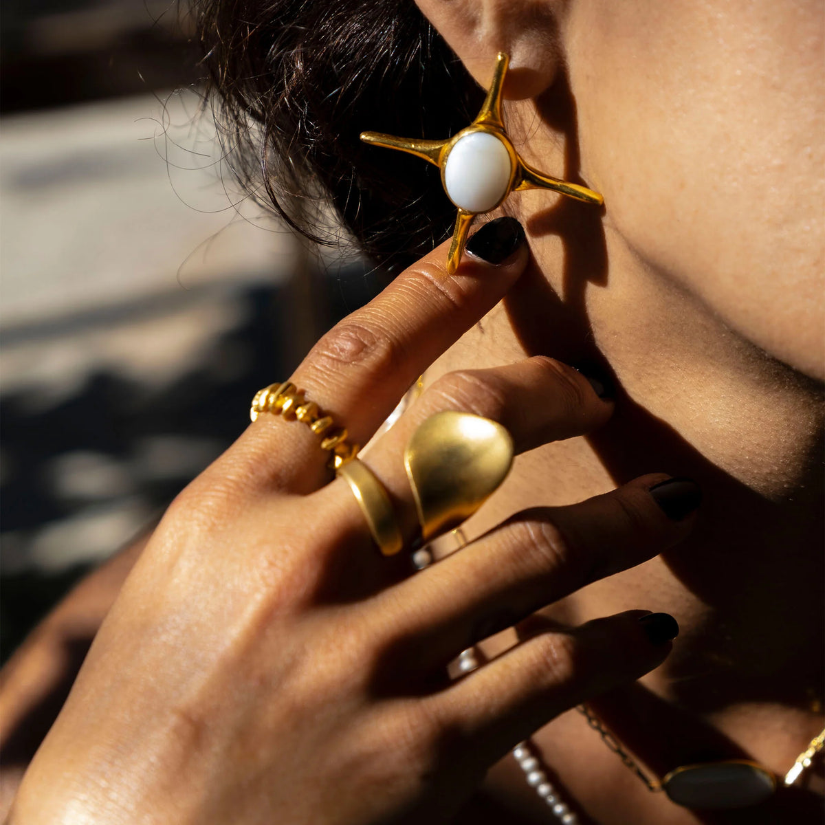 The Malateral Ring draws inspiration from the shapes of bones, manifesting an organic form with a design that mimics the curves and contours of bone shapes.