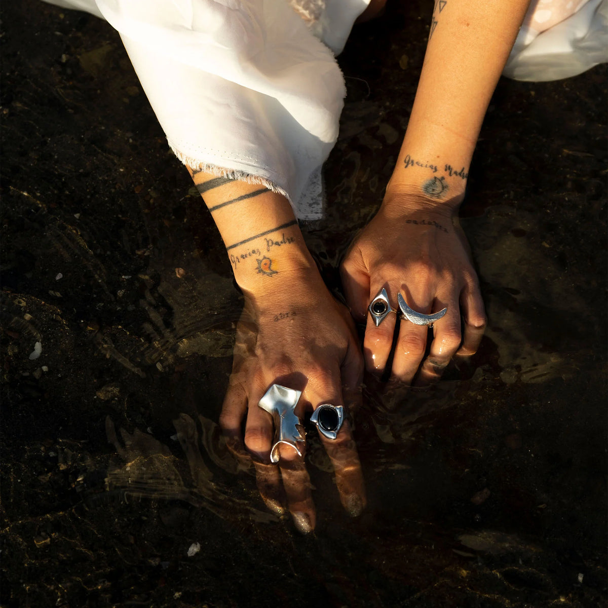 Resembling the form of an eye in its nature-inspired design, one can tell the Rhombus Ring is a modern interpretation of the evil-eye protecting its wearers and comes with agate, rose quartz or onyx gemstones in the center.