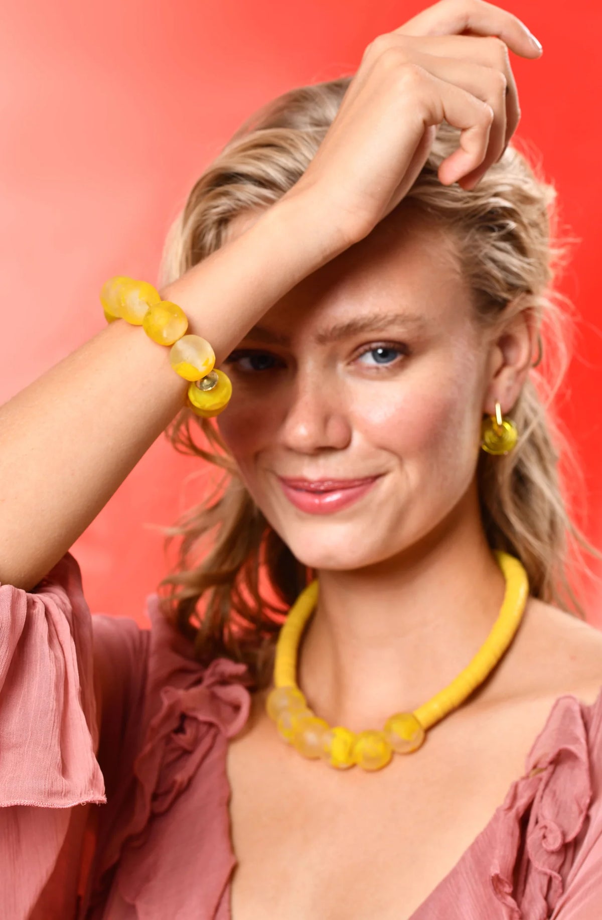 The brightest necklace of this season, The Yellow Reef Necklace has speckled yellow recycled glass beads from Ghana and vinyl beads from Nigeria. Heartwarming at its most.